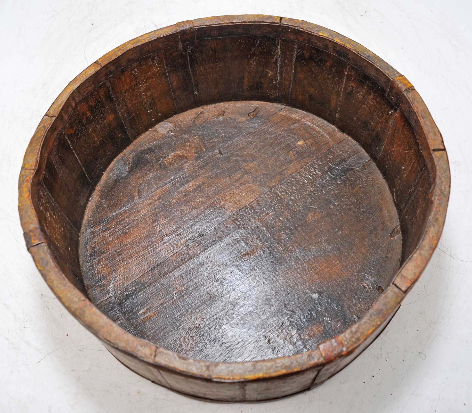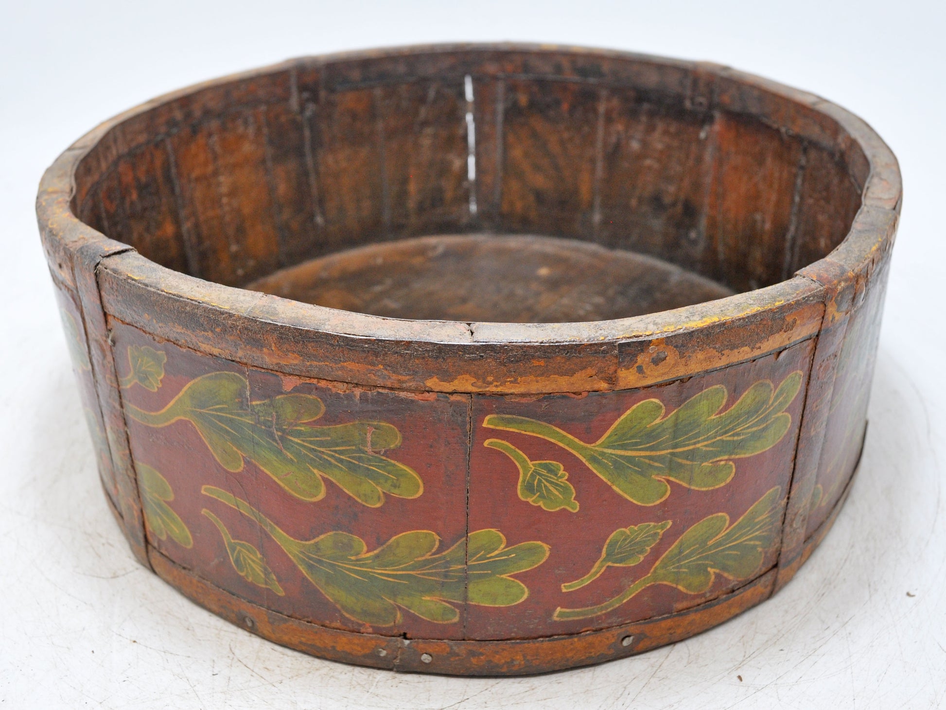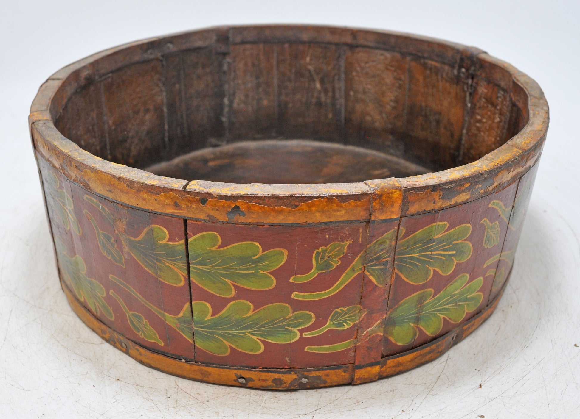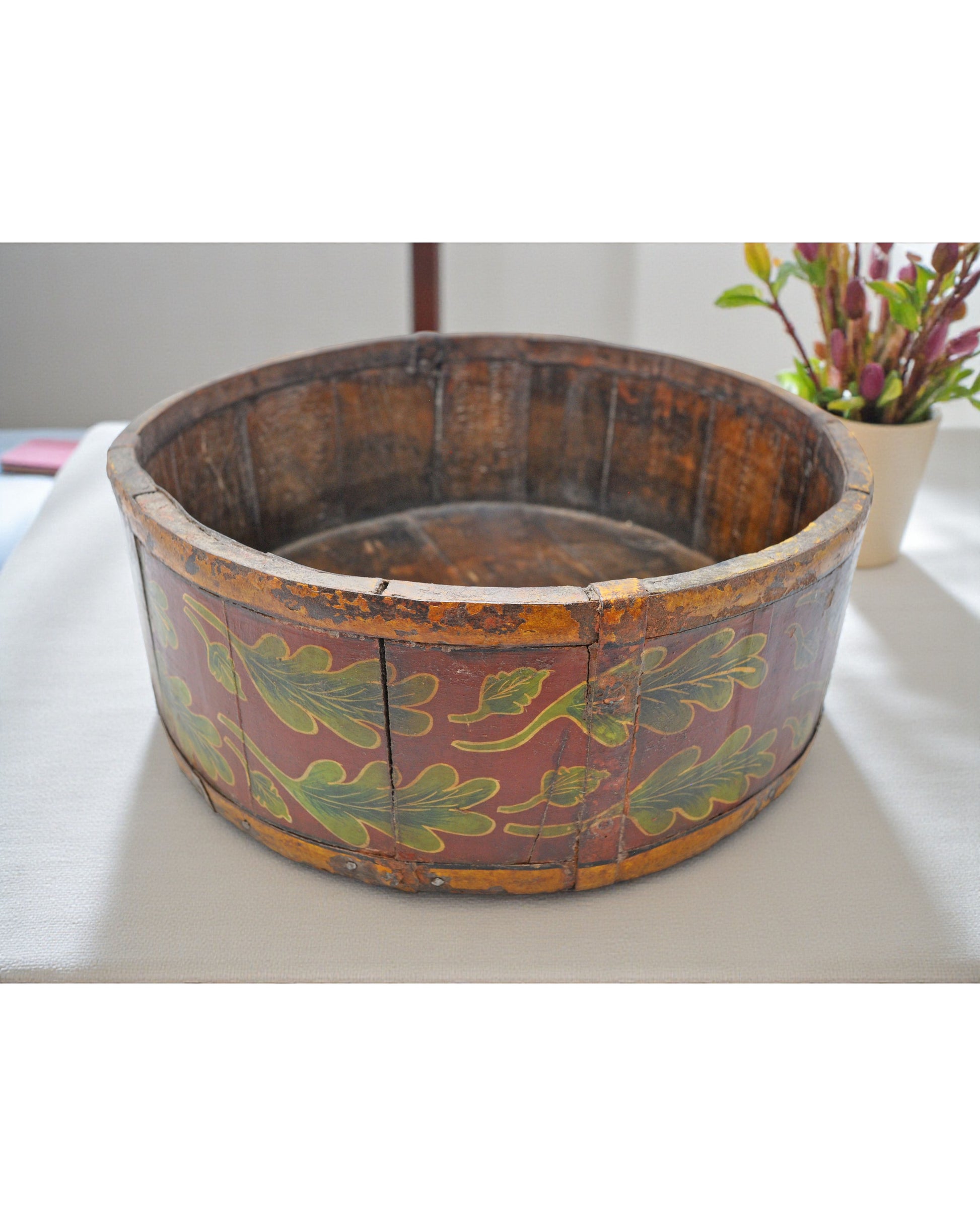Vintage Wooden Round Basket Original Old Hand Crafted Painted