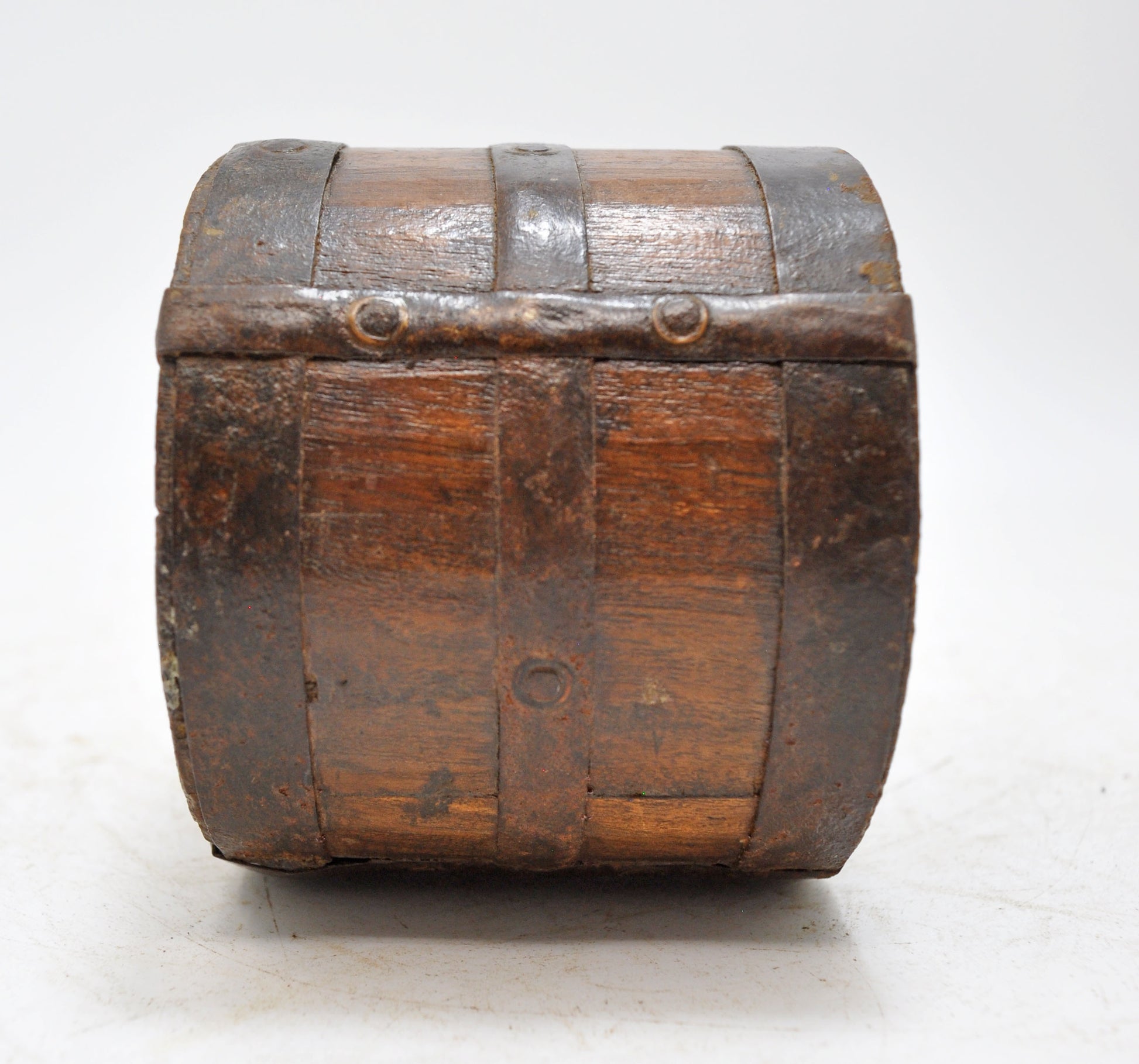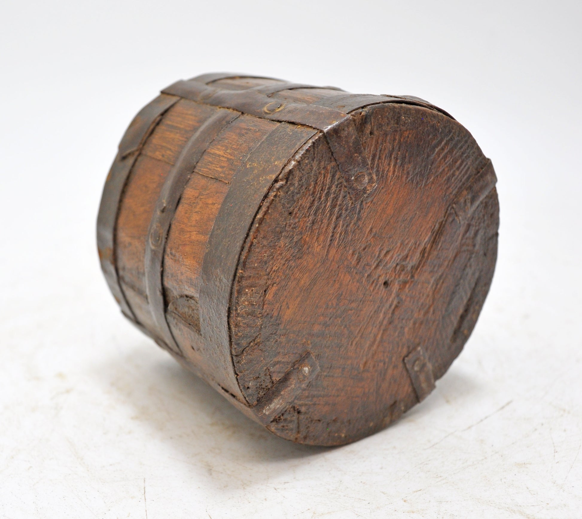 A nice looking old wooden small pot originally used for measuring grains. Hand crafted in a nice shape. Good condition and a rich patina. Origin India.