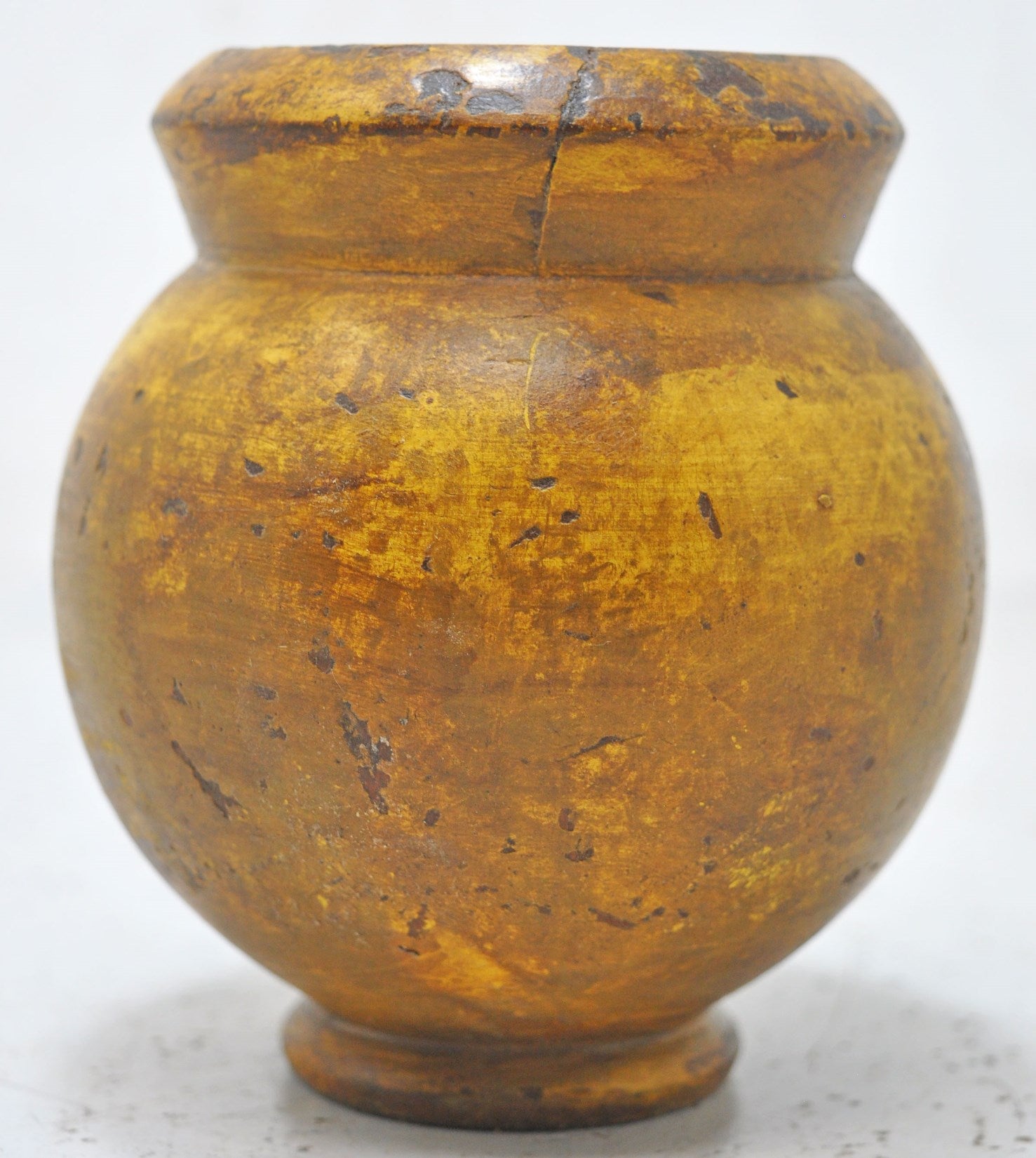 A nice looking old wooden pot originally used for drinking water. Hand carved in a nice shape. Good condition and a rich patina. Origin India.