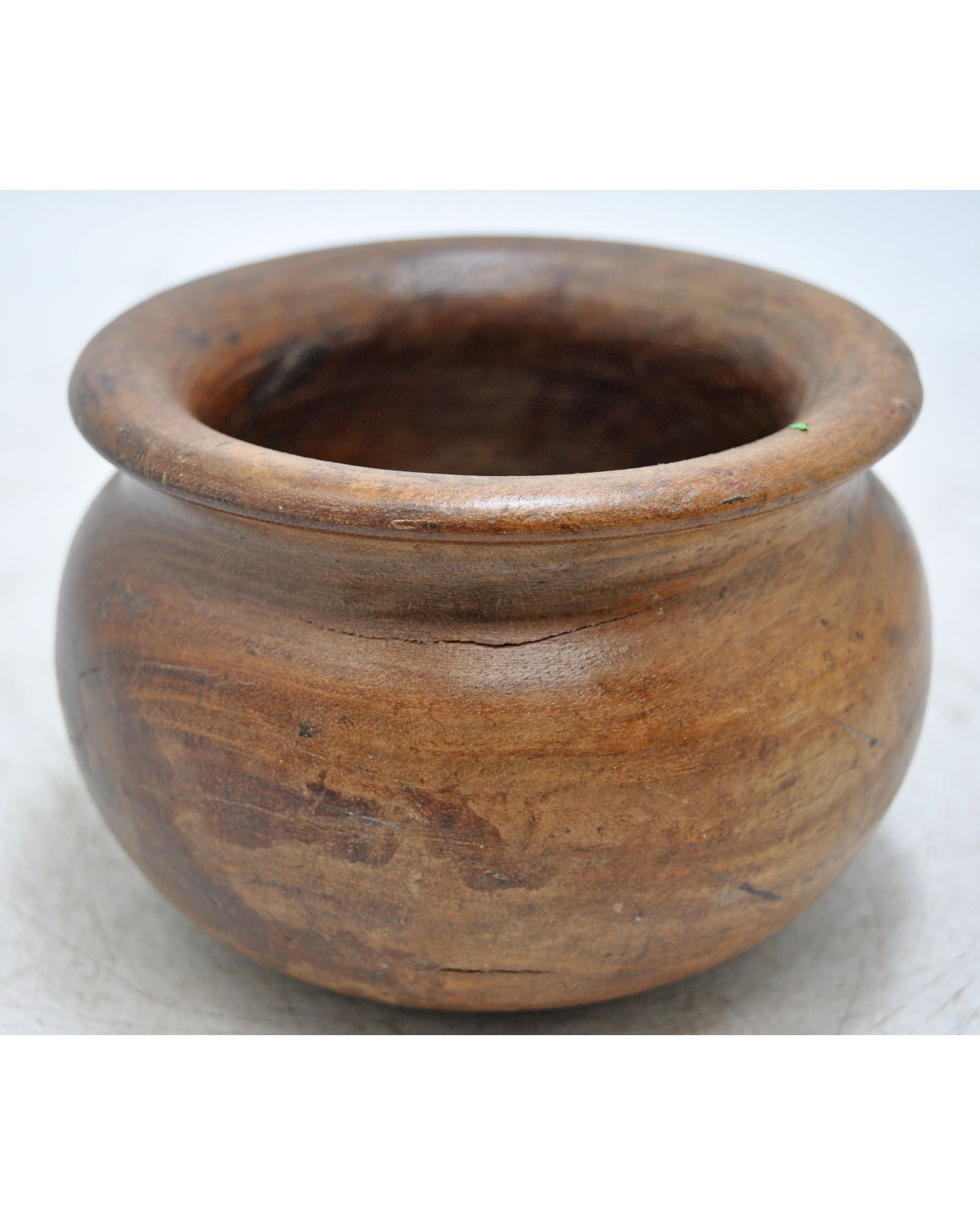 This is a nice looking vintage wooden round pot originally used for drinking water. It was hand carved and is in good condition with a rich patina. It came from India.