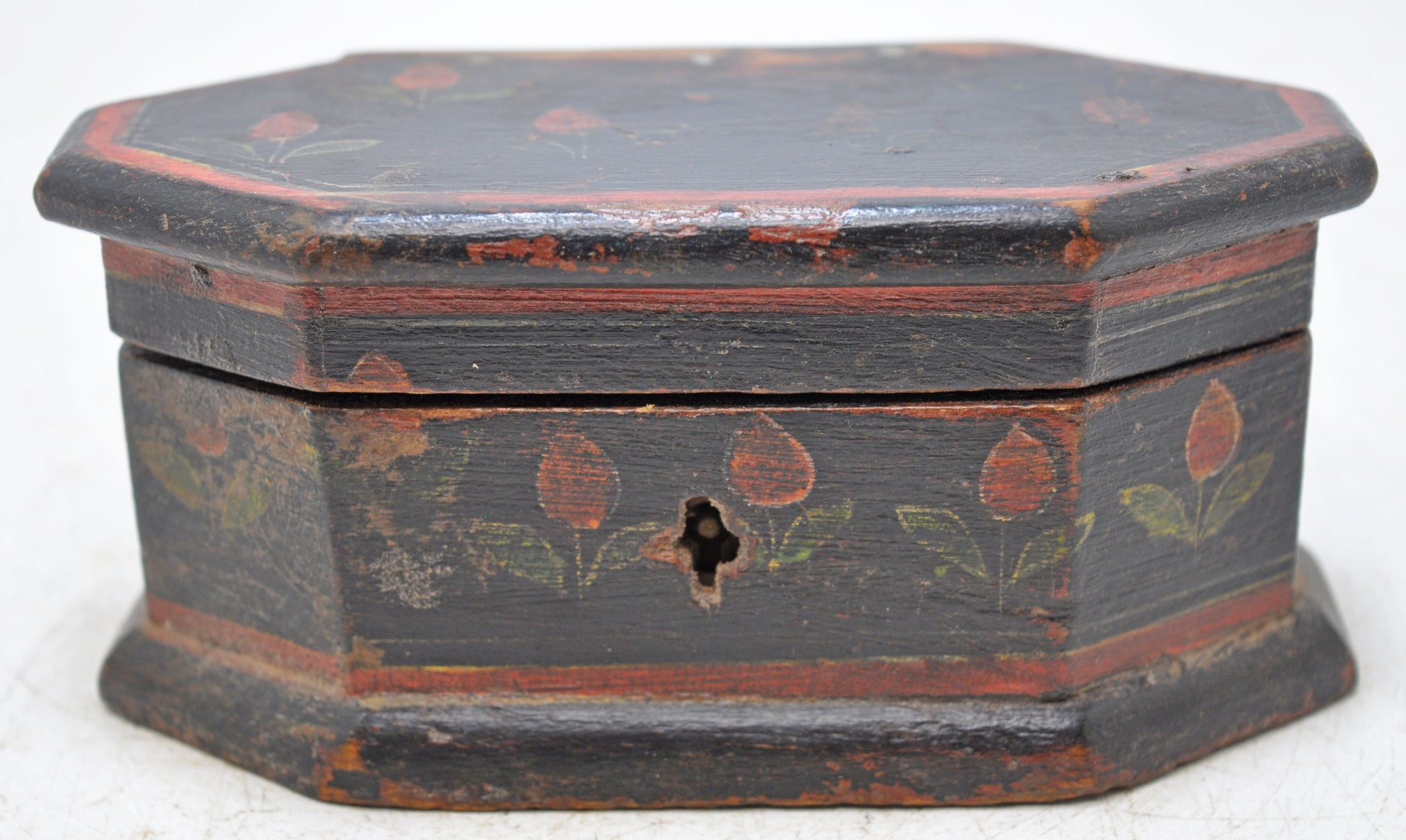 Vintage Wooden Small Hexagonal Storage Box Original Old Hand Crafted Painted