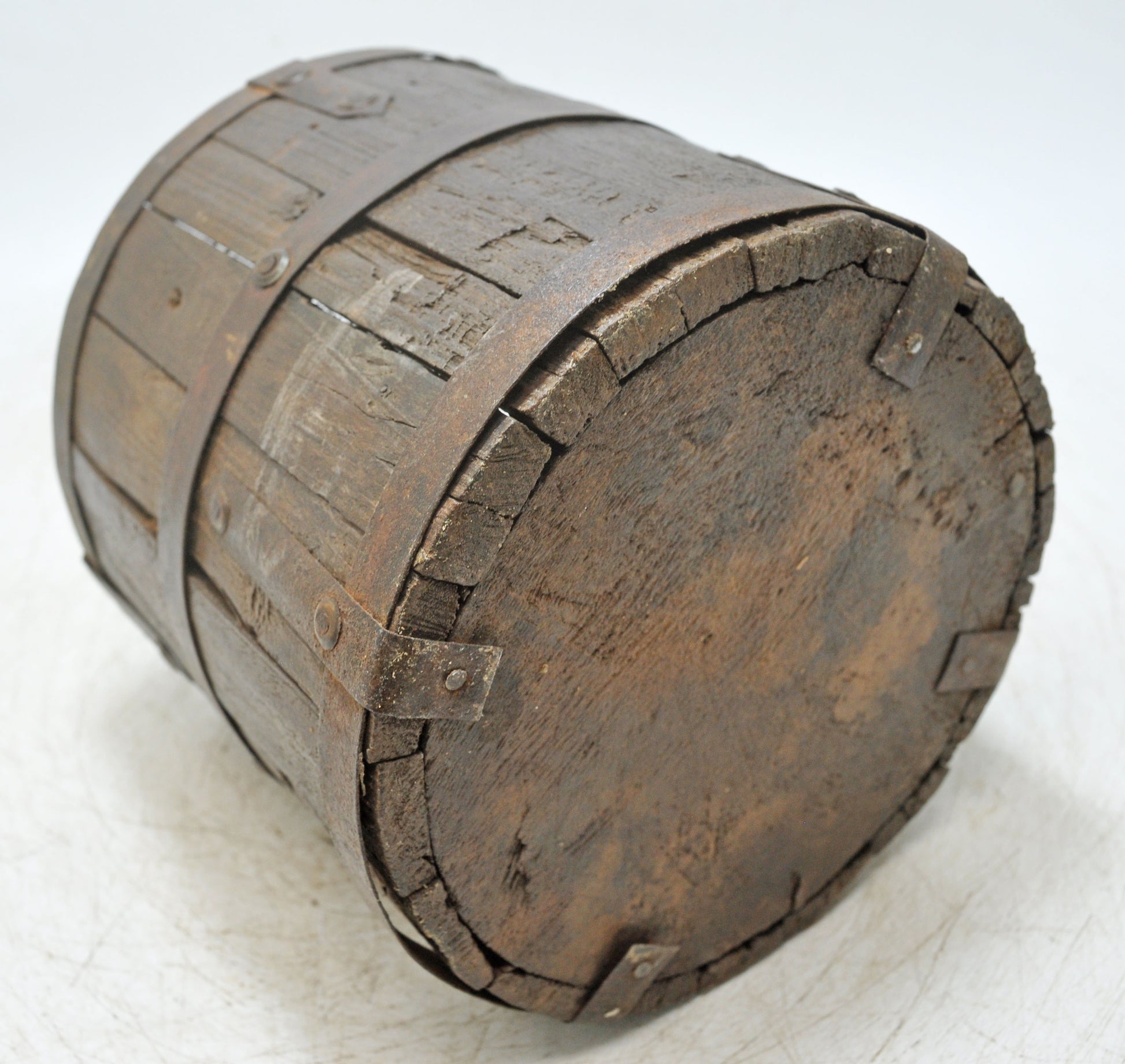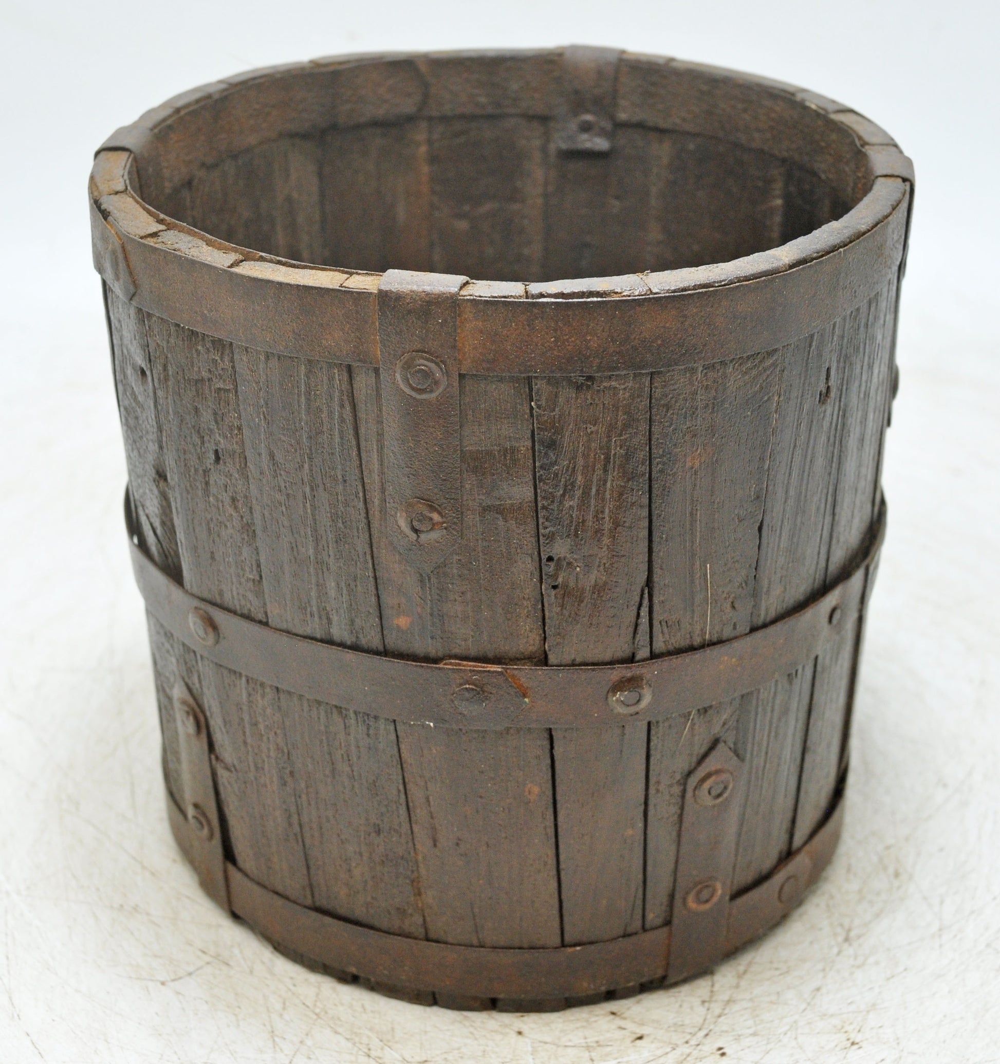 Vintage Wooden Small Planter Pot Original Old Hand Crafted Metal Fitted