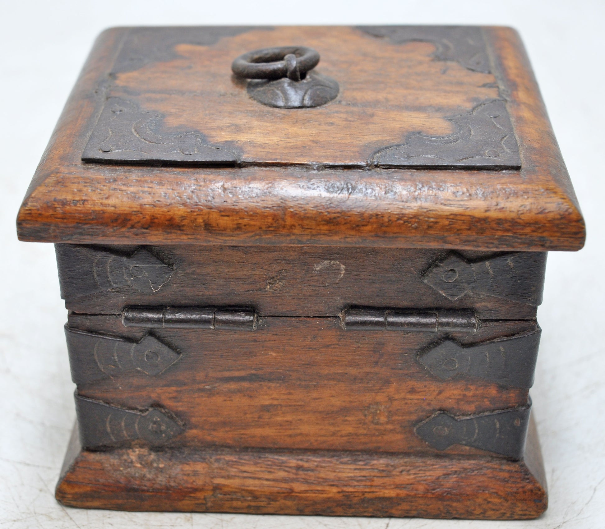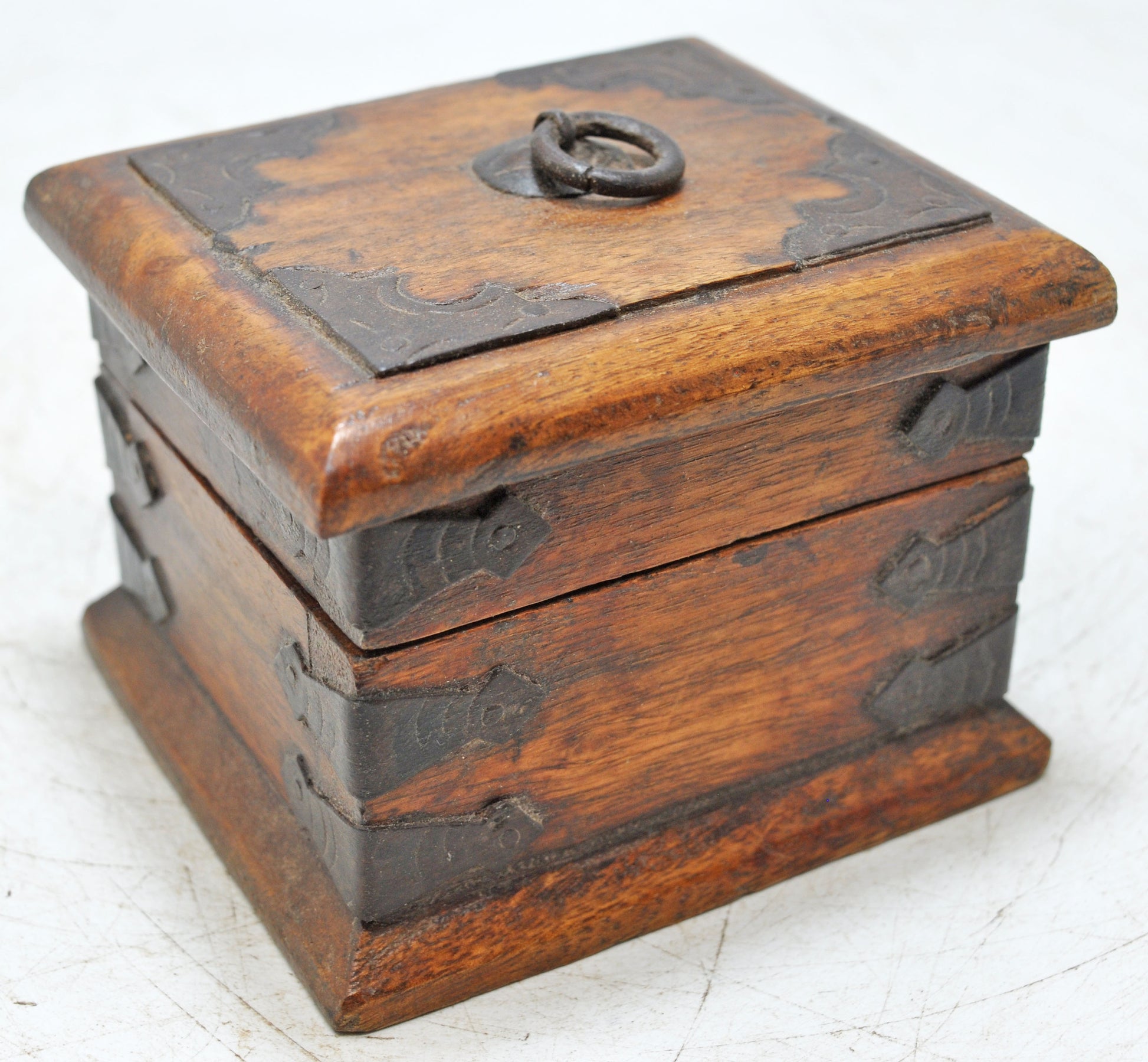 Vintage Wooden Small Square Storage Box Original Old Hand Crafted Metal Fitted