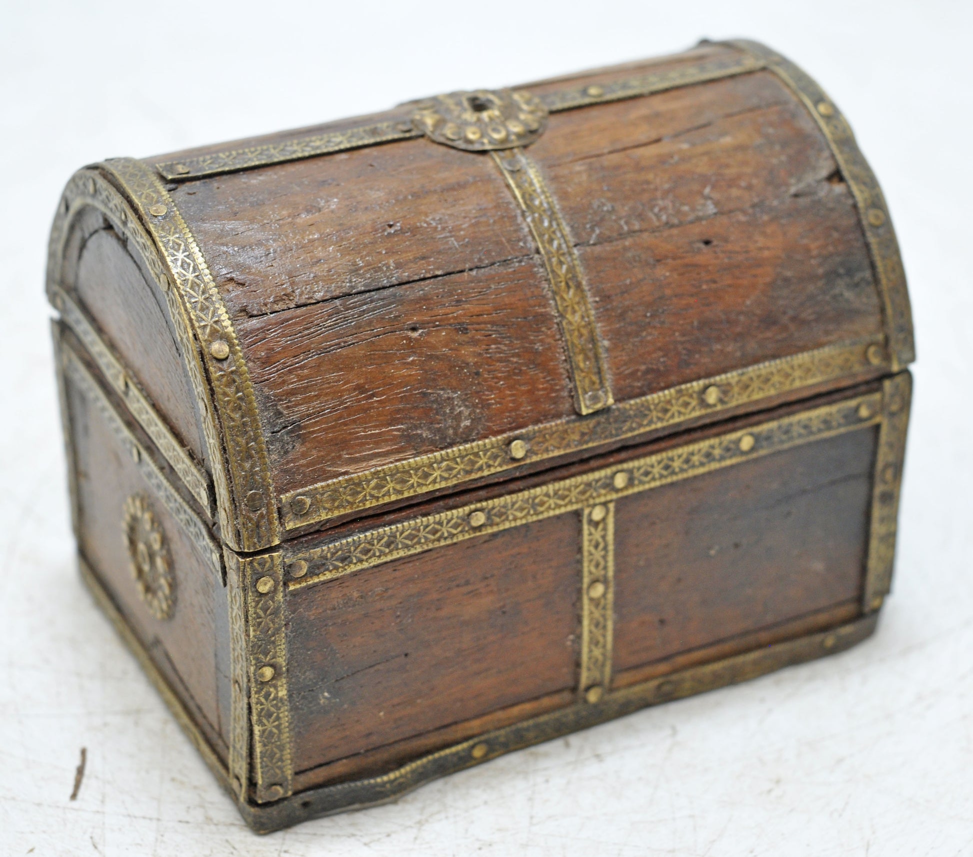 Vintage Wooden Small Storage Box Hand Crafted Brass Fitted