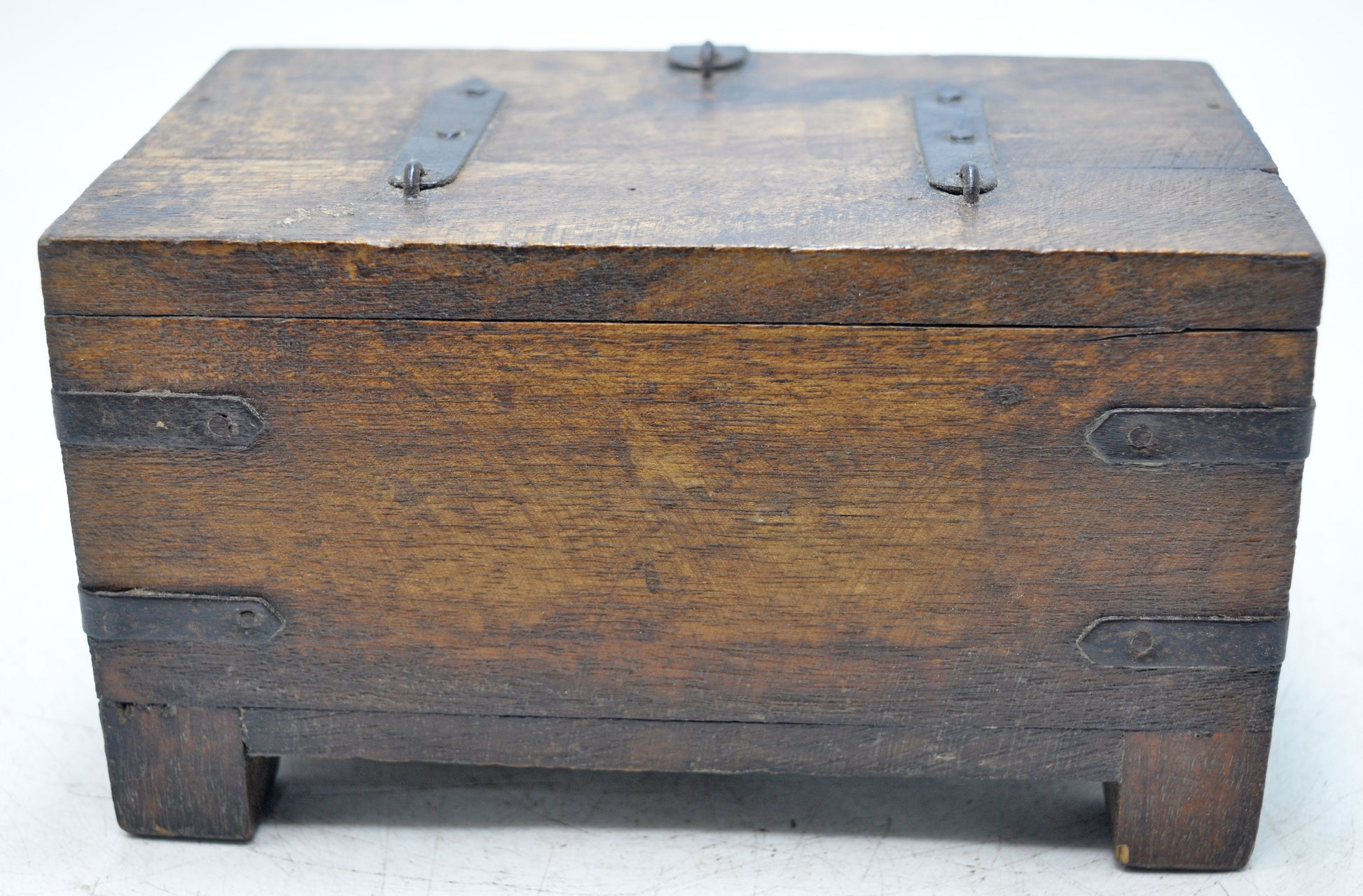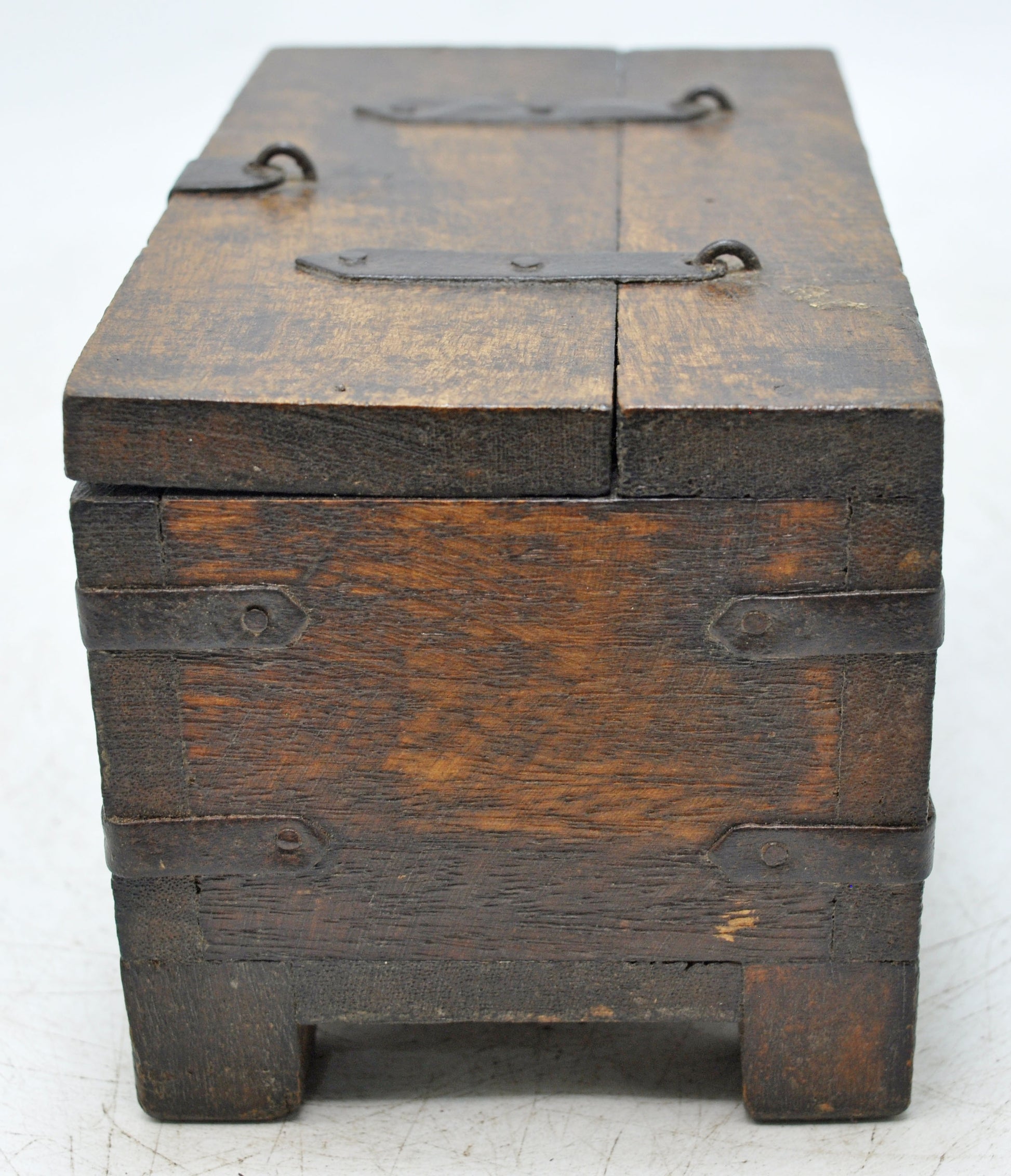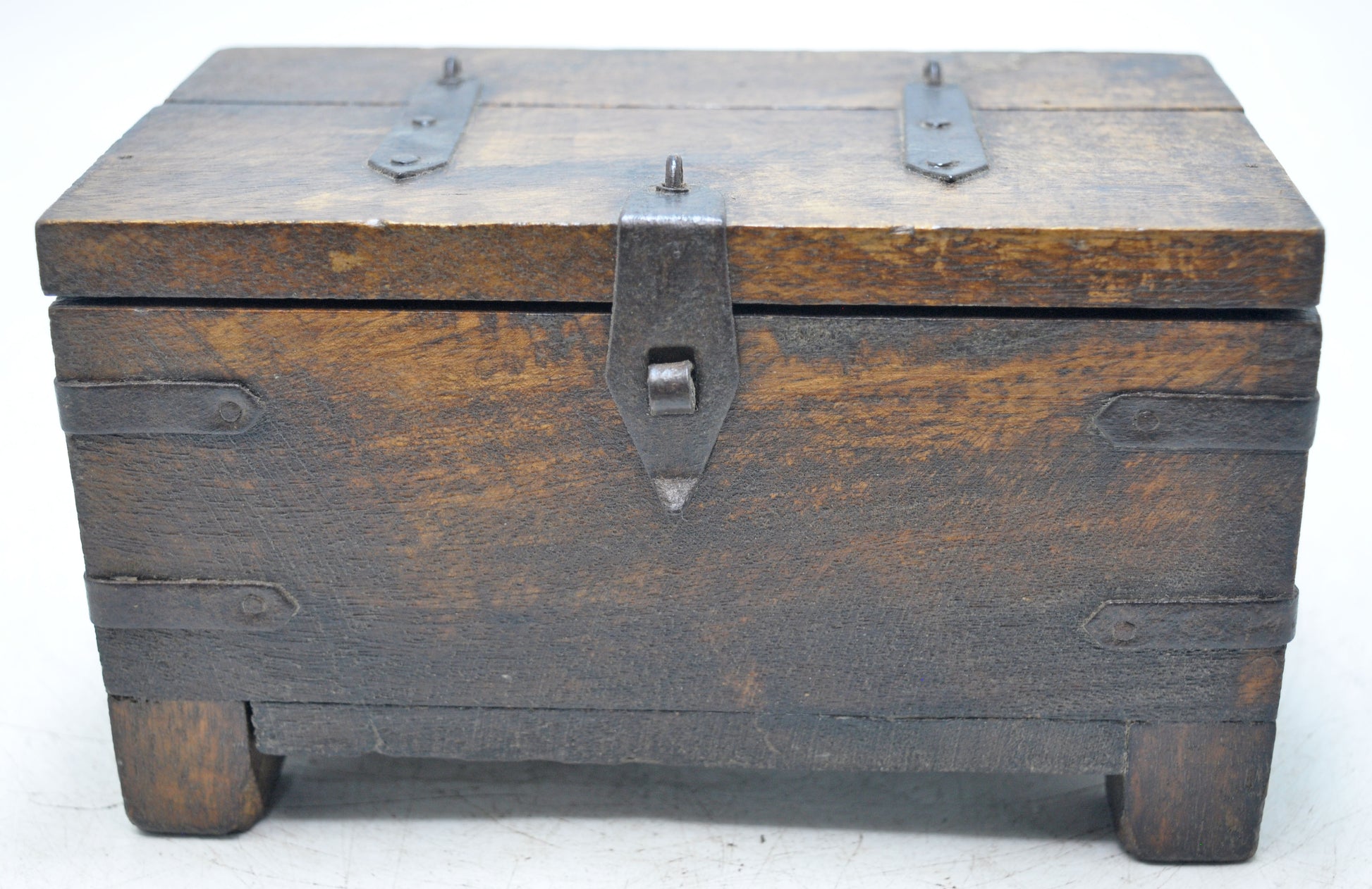 Originating from India, this delightful, hand-fashioned old wooden strongbox captivates with its elegant contours. It is presented in superb order and displays a magnificent, historic patina, speaking volumes of its enduring quality.