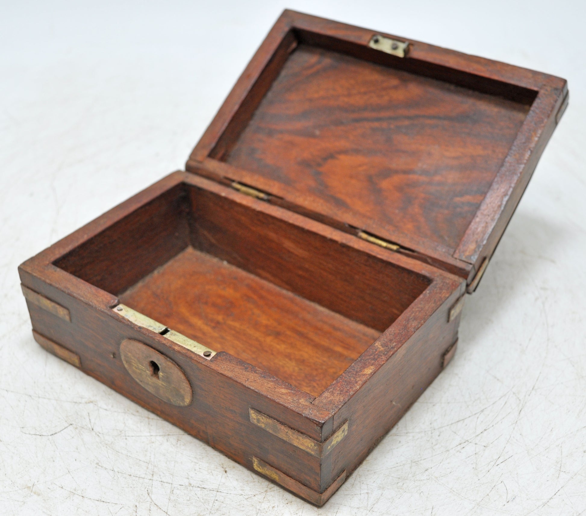 Vintage Wooden Small Storage Box Original Old Hand Crafted Brass Fitted
