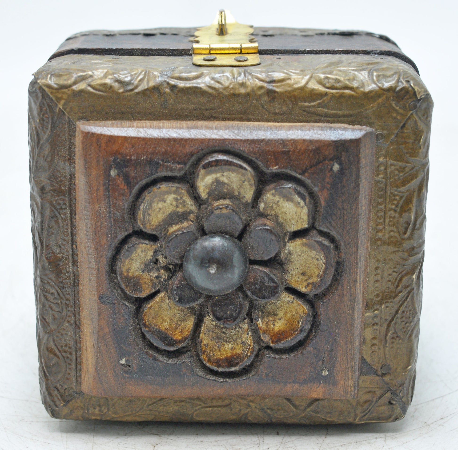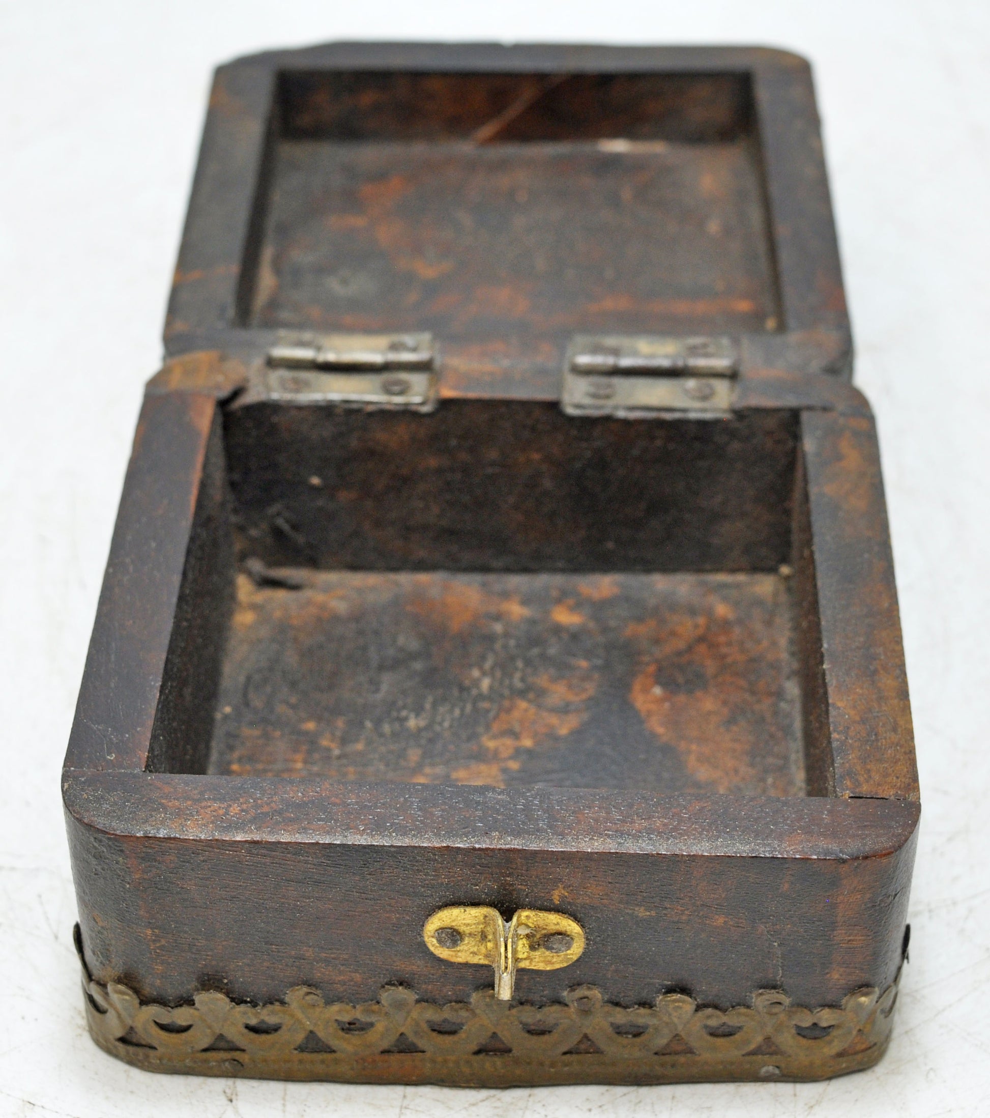 Vintage Wooden Small Storage Box Original Old Hand Crafted Brass Fitted