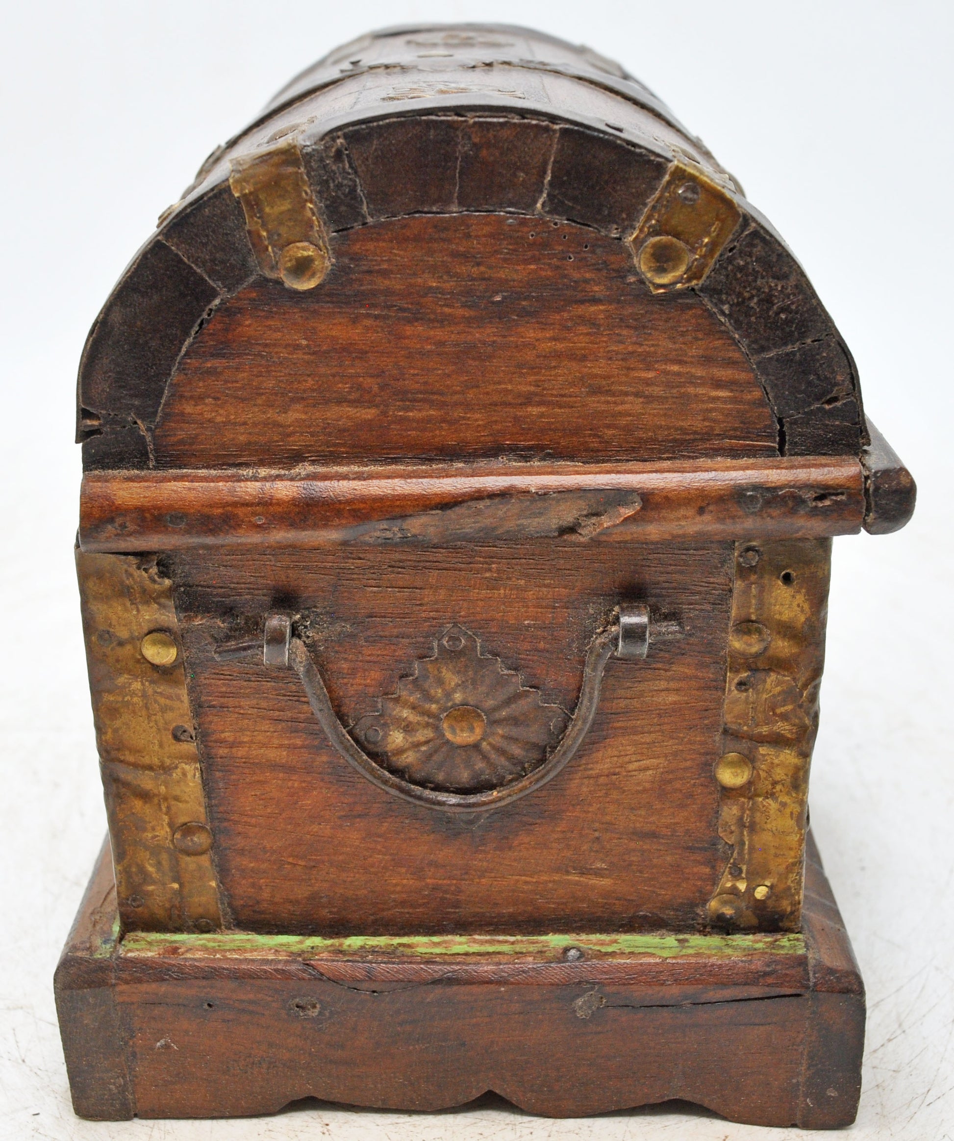 This vintage wooden small storage box features a single drawer beneath a gracefully curved half-round top, expertly hand crafted to showcase detailed workmanship. The piece remains in good condition, with a beautiful patina that adds depth and character. Perfect for collectors or as a decorative accent, it merges functionality with antique charm. Made in India, it reflects the country’s heritage of skilled woodworking.
