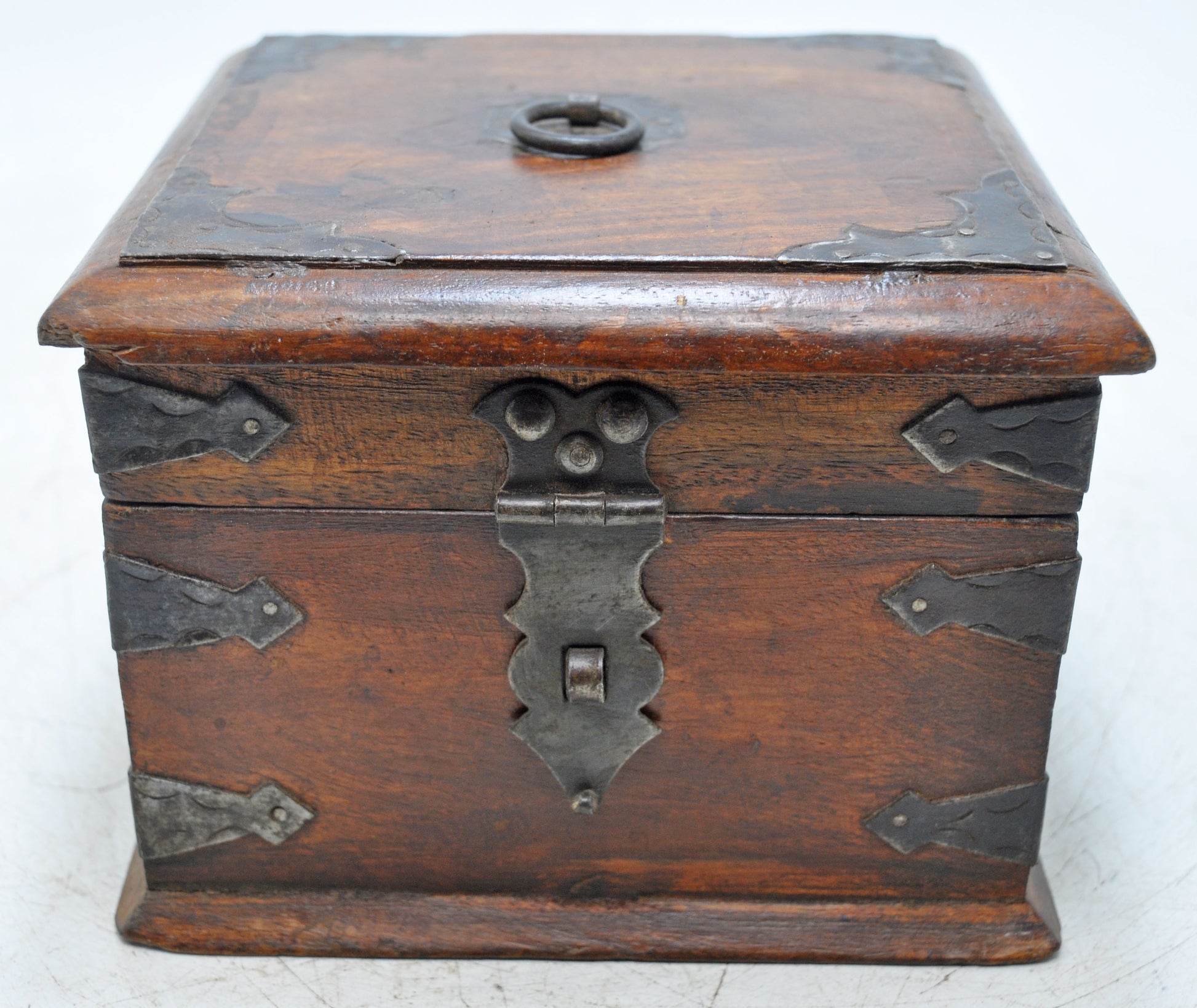 Vintage Wooden Square Storage Box Original Old Hand Crafted Metal Fitted