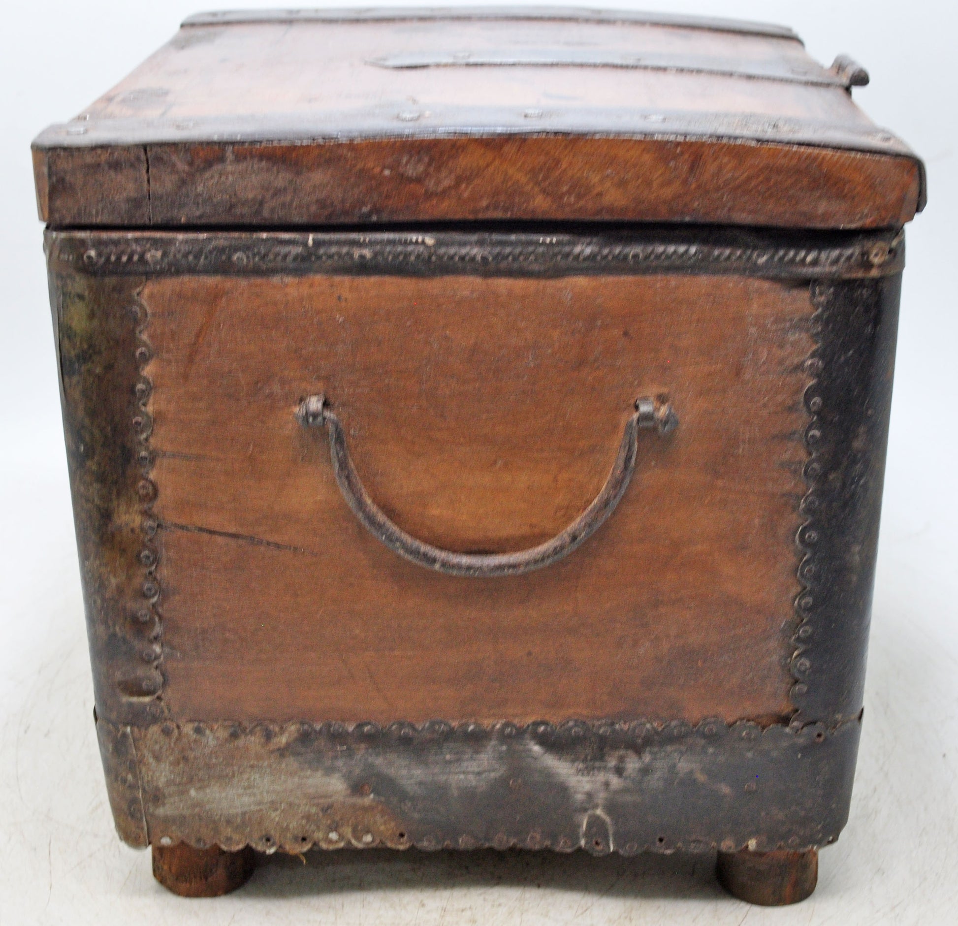 Vintage Wooden Square Storage Chest Box Original Old Hand Crafted Metal Fitted