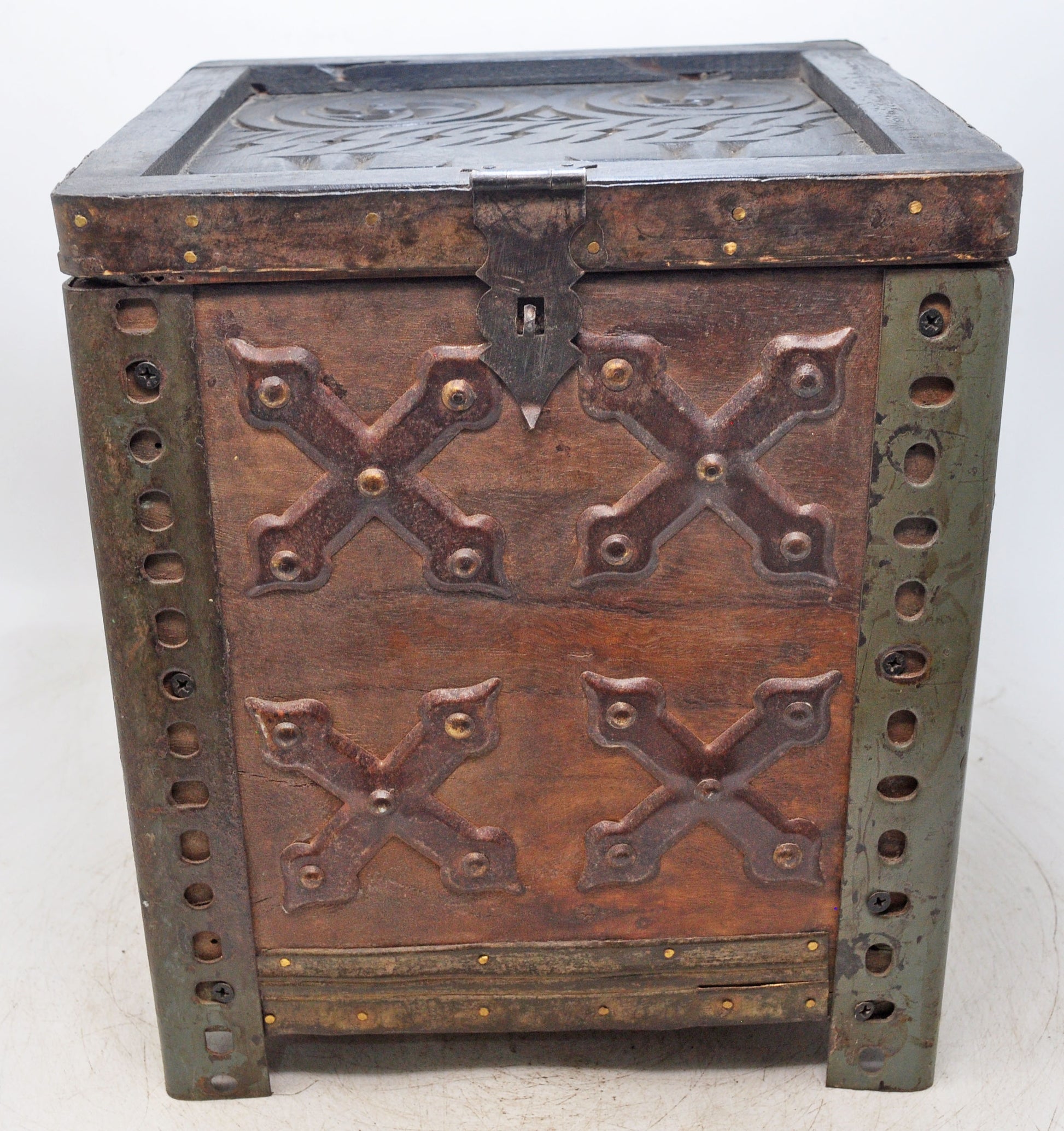 Vintage Wooden Square Storage Chest Box Original Old Hand Crafted Metal Fitted