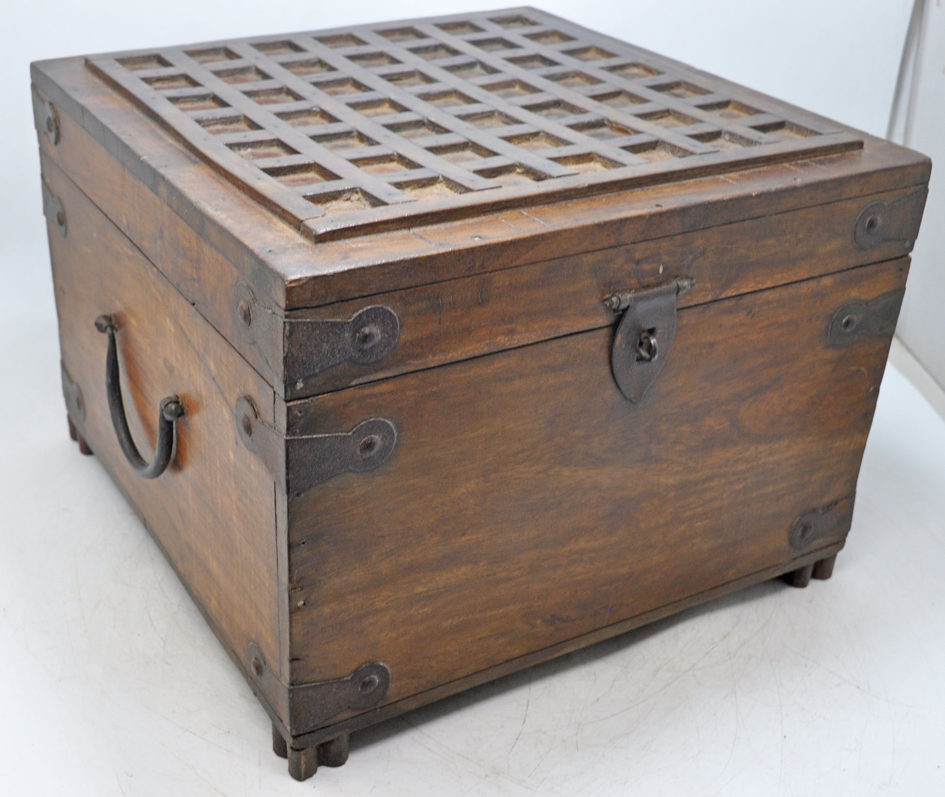 Vintage Wooden Storage Box Original Old Hand Crafted Metal Fitted