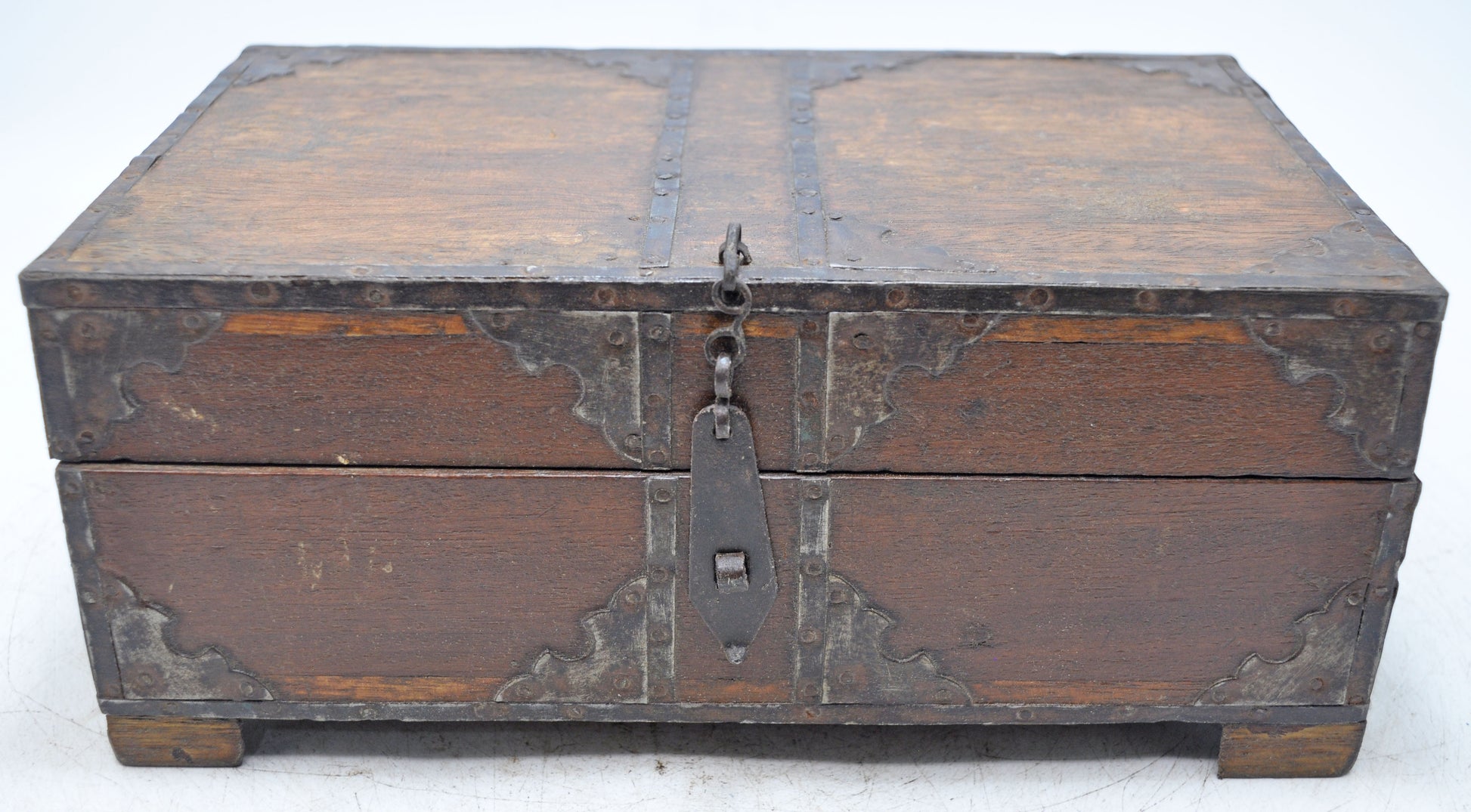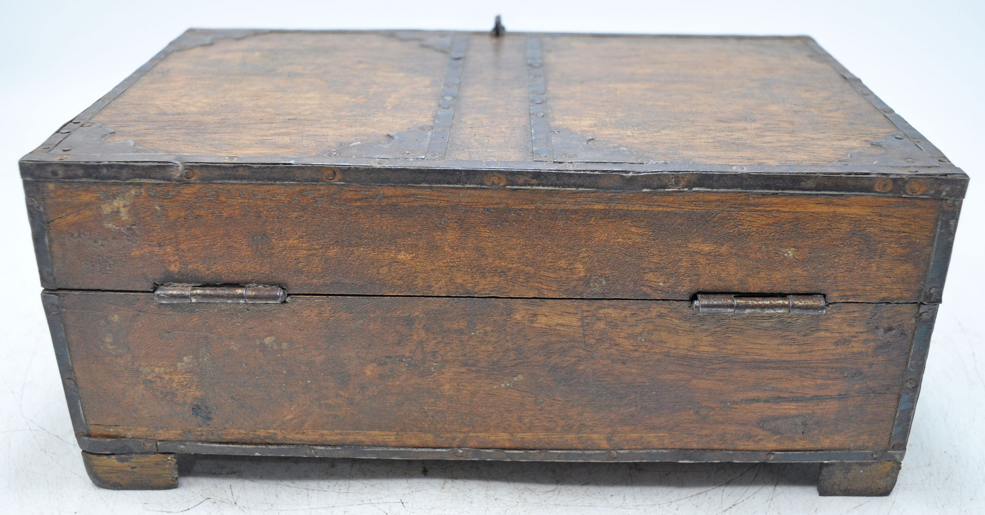 Vintage Wooden Storage Box Original Old Hand Crafted Metal Fitted