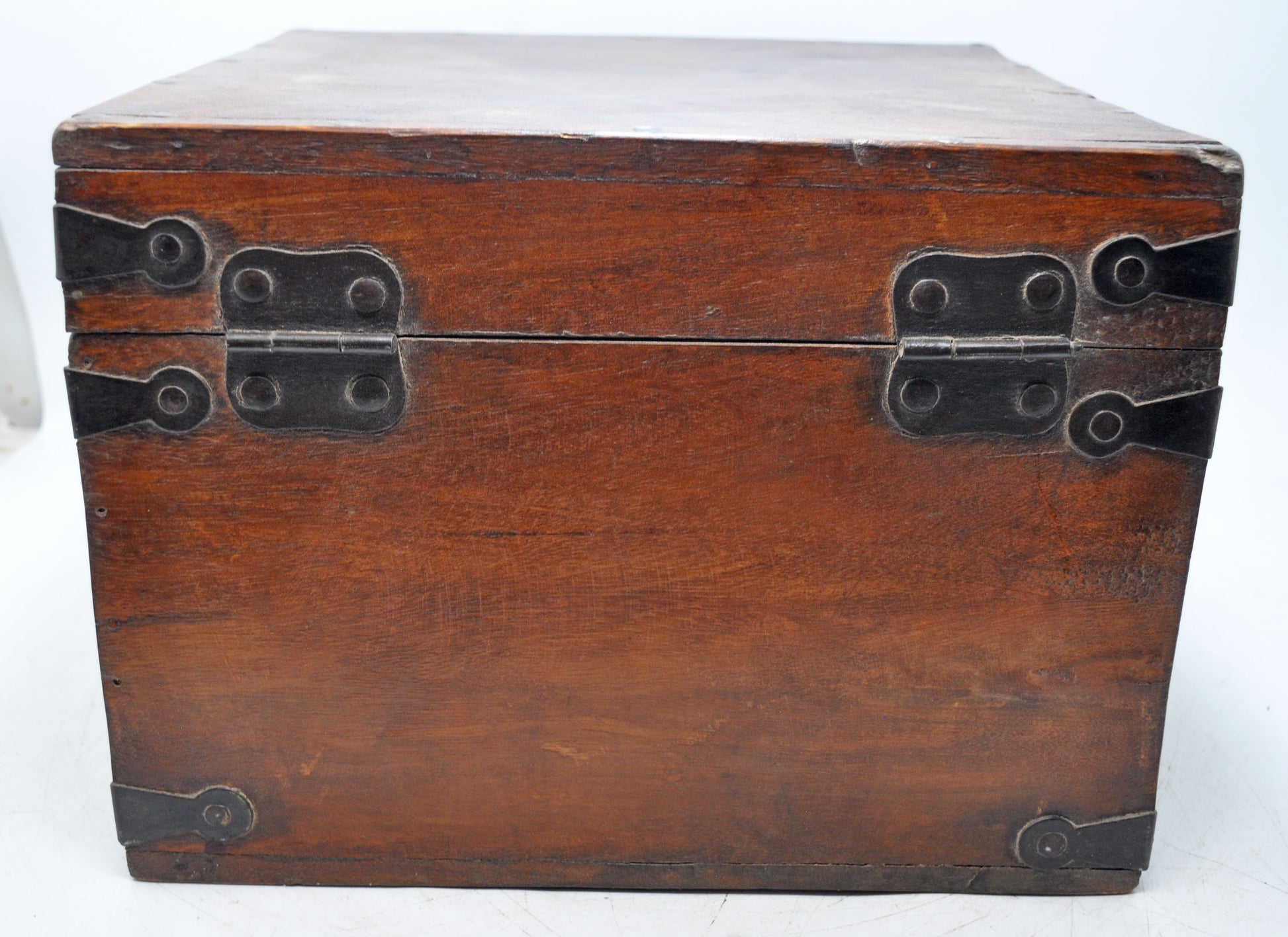 A charming, hand-crafted wooden chest from India. This beautiful square storage box has developed a rich, warm patina over time, highlighting its vintage appeal. In good condition, it's an excellent piece for adding a touch of old-world character and practical storage to any space.
