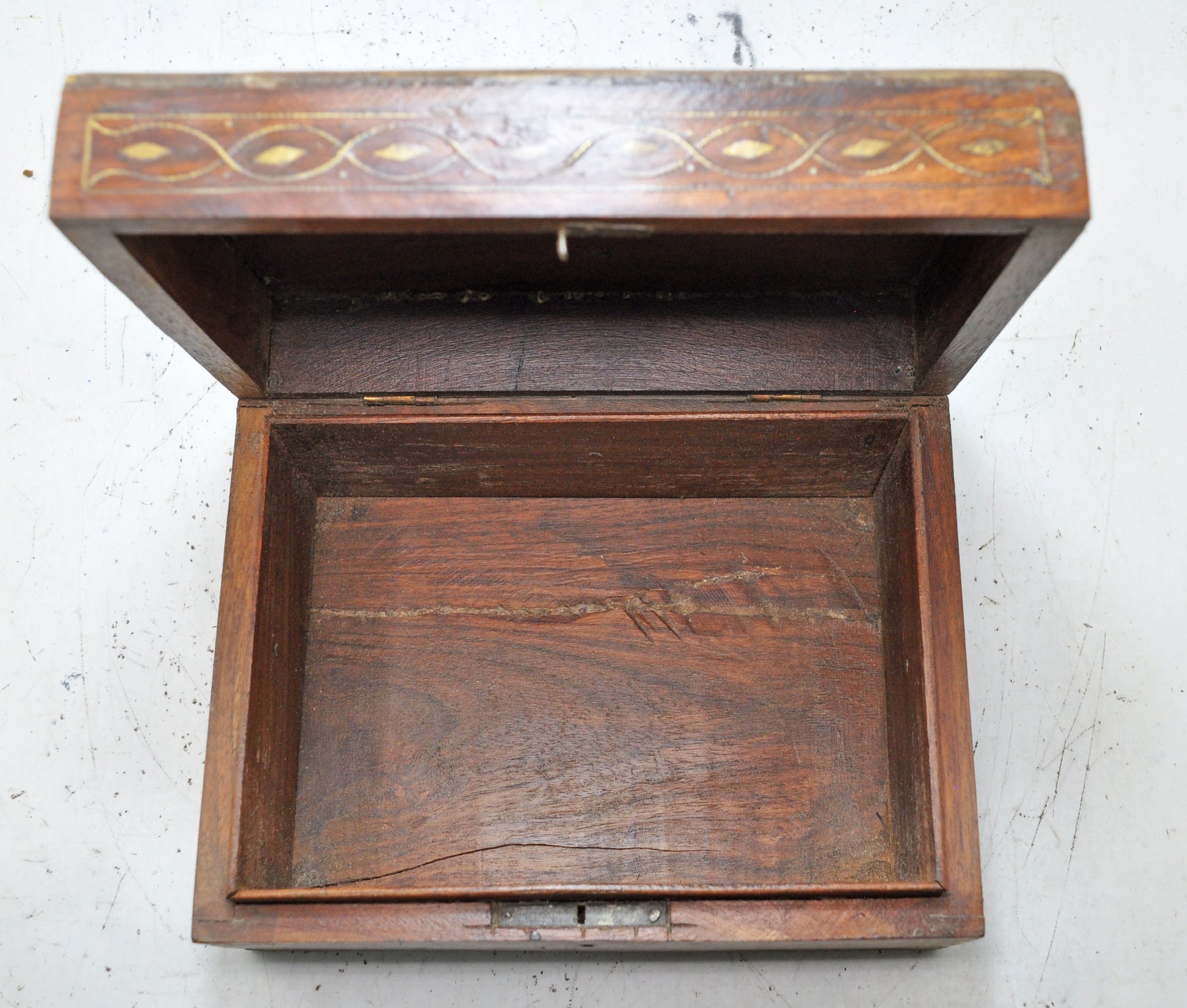 Vintage Wooden Storage Chest Box Original Old Hand Crafted Fine Brass Inlay