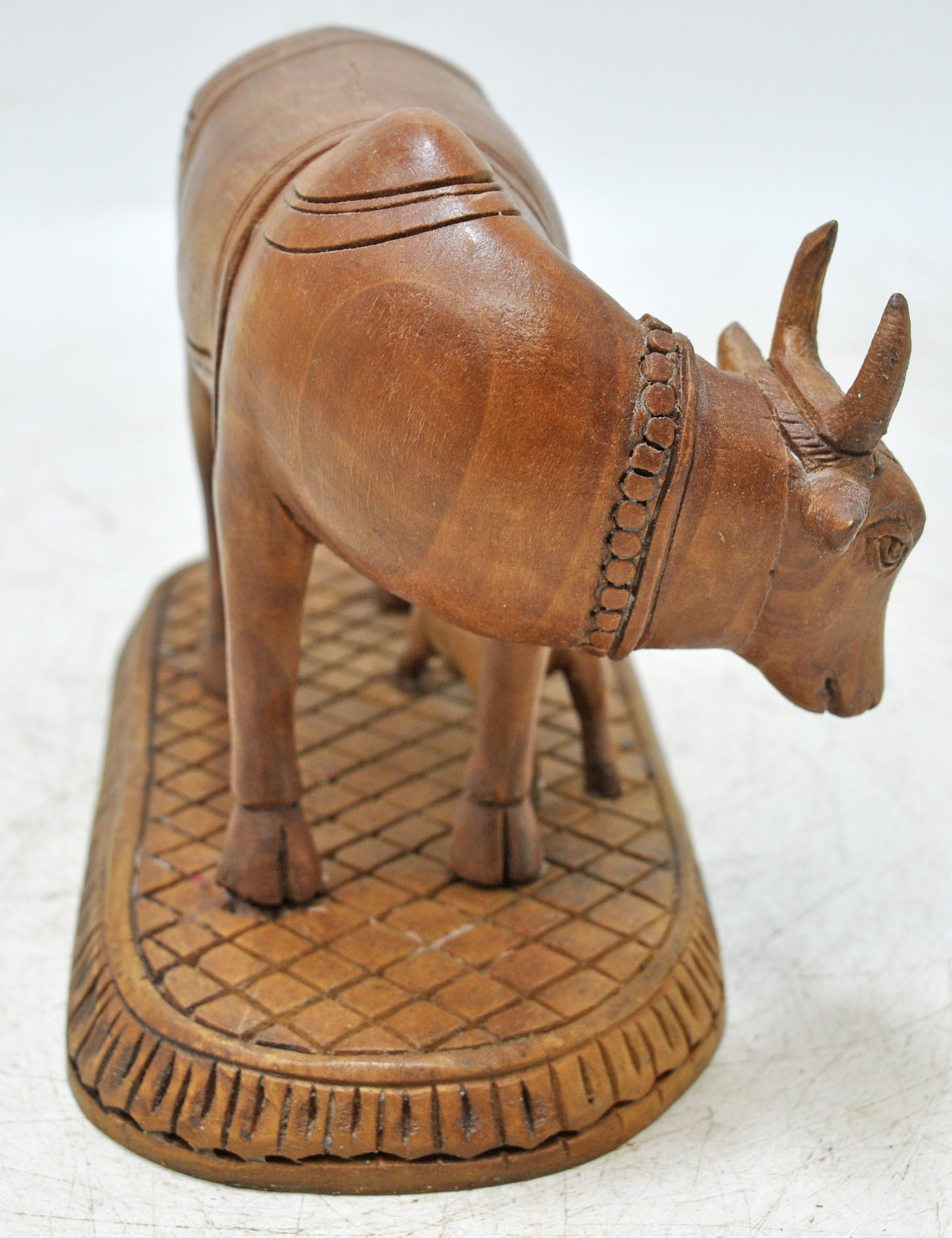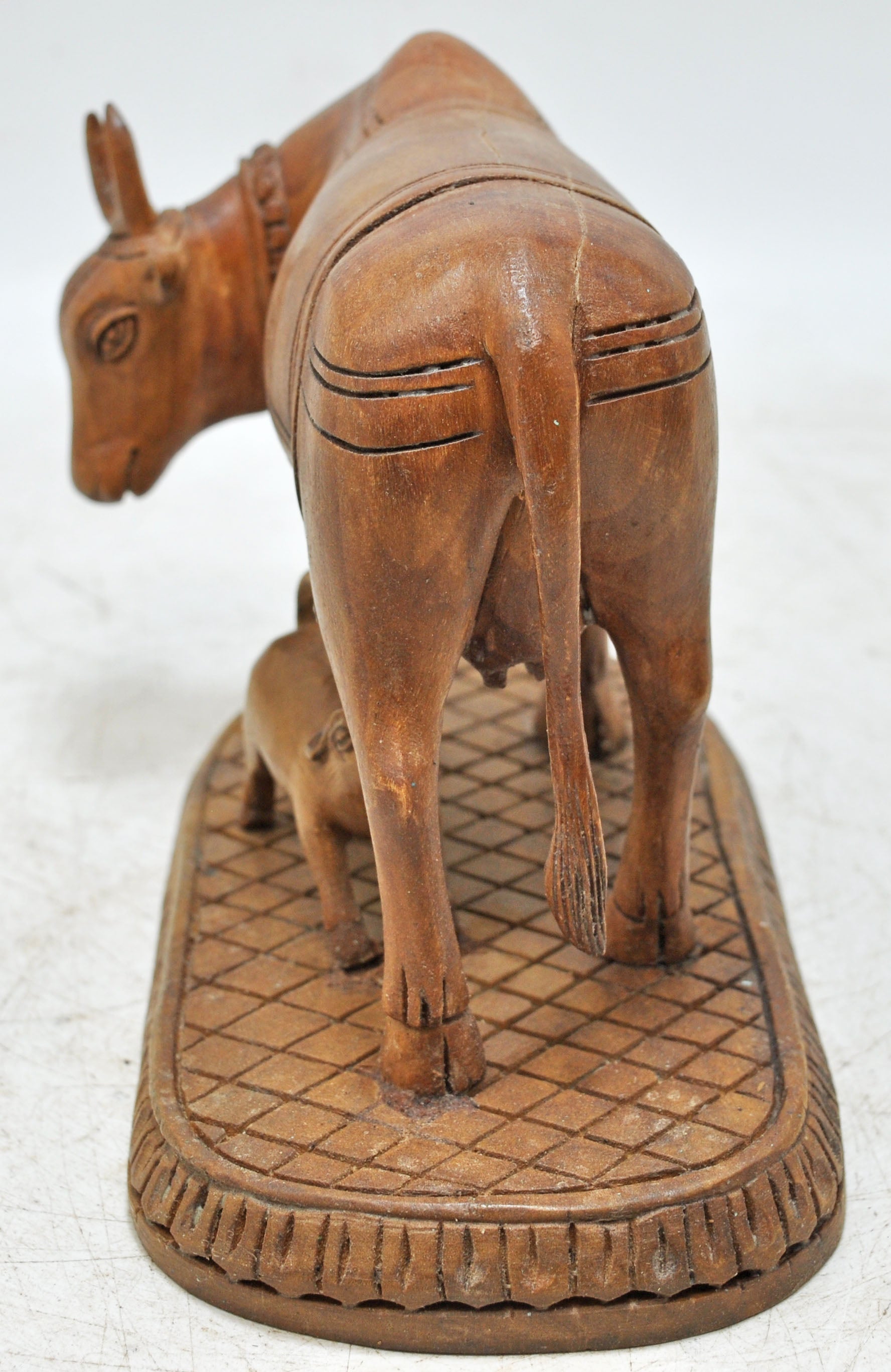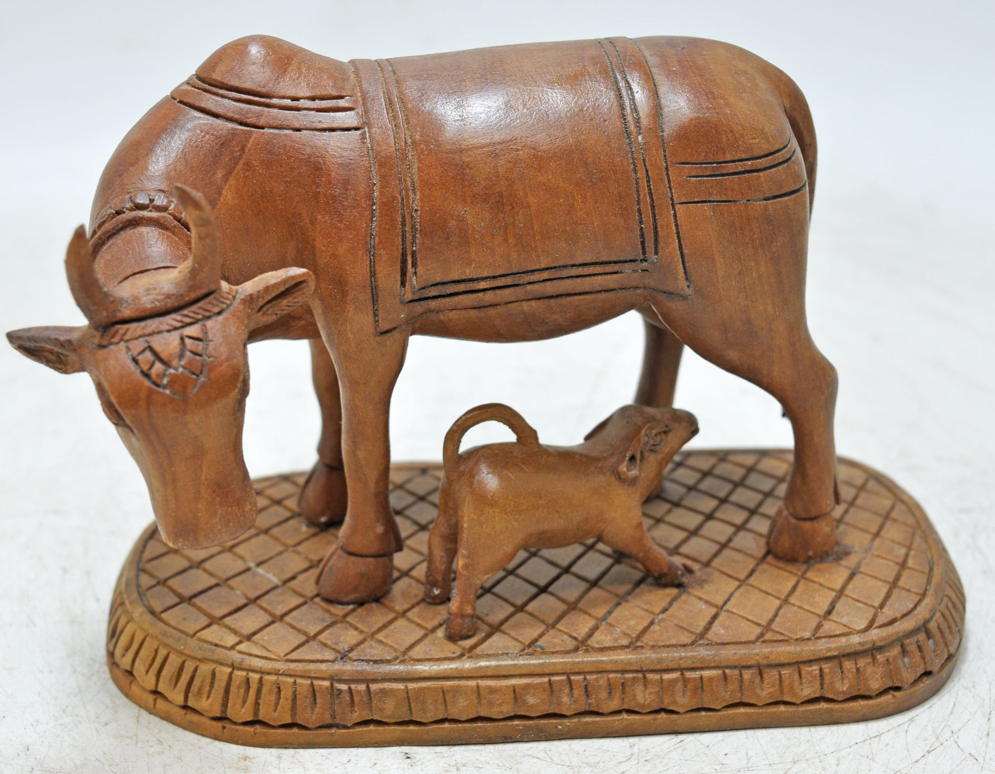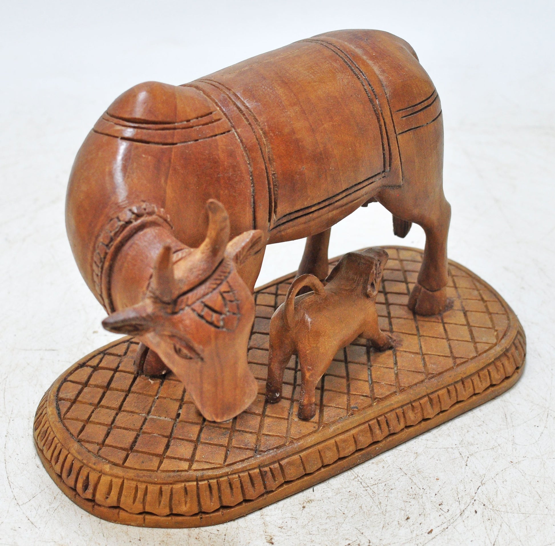 Vintage Wooden Very Fine Cow Nandi With Calf Figurnie Original Old Hand Carved